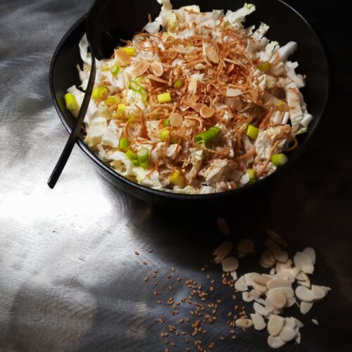 aux nouilles croustillantes. Tout est dans l’assaisonnement ! Une bonne salade c’est généralement la salade pour laquelle vous avez passé plus de temps à préparer l’assaisonnement...